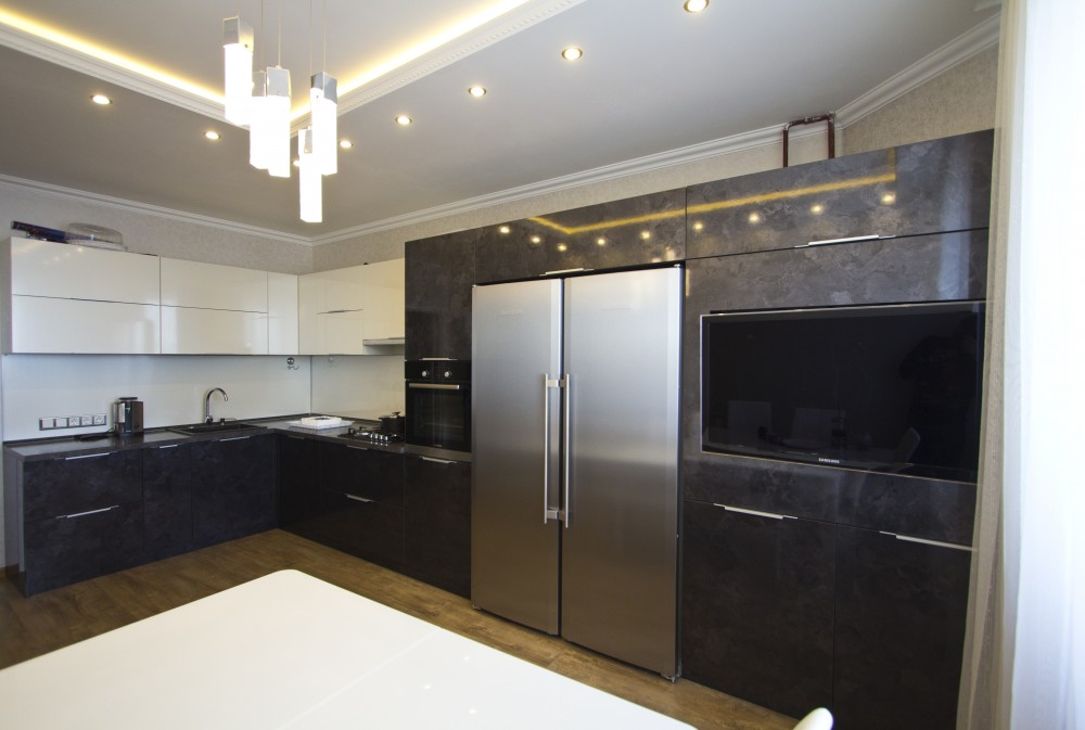 - Кухонные фасады из пластика, пленки, ЛДСП, шпона, каменного шпона, массива, акрила, эмаль и т.д.